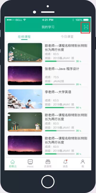 学生打开【云课堂APP】,点击右上角扫一扫按钮,扫描二维码加入班级。